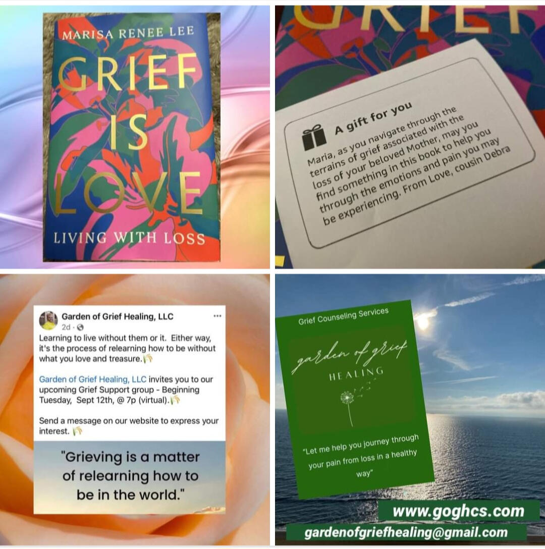 [email protected] www.goghcs. com for my gift this amazing book Grief Is Love Living With Loss @marisareneelee to help me with this new journey to continue to guide my steps. Thank you for your love, support, patience, truth, and your ear. Thank you for letting me know how you dealt with the same experience of losing both parents and a sibling within a few years of each other. Thank you for letting me know the emotions sometimes have and can't explain are part of my grieving process and it's normal to feel that way. ~ Maria